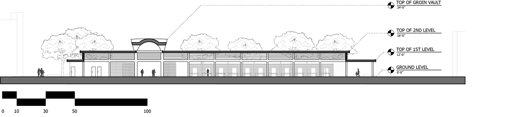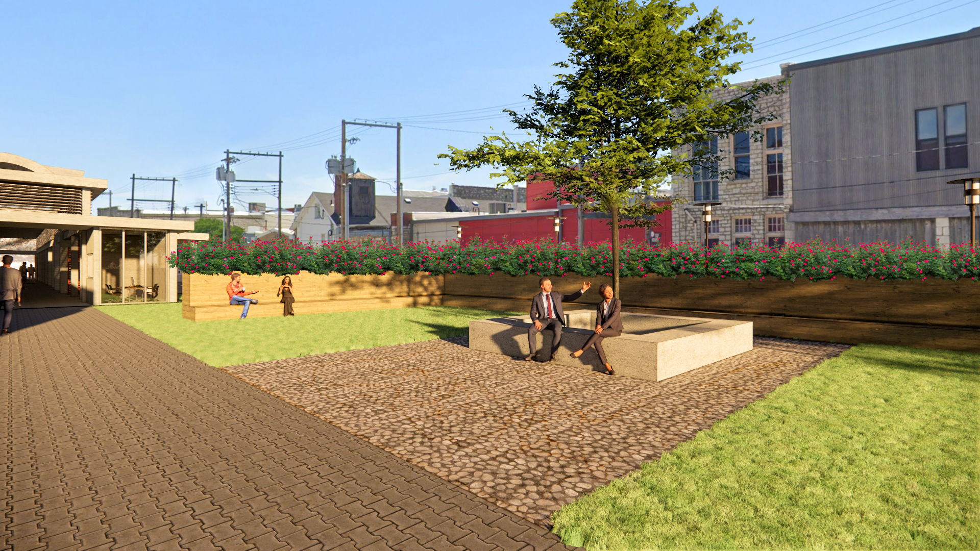 To create a cultural epicenter downtown, there needed to be places where people can gather and interact with others. The landscape elements are all intended to create spaces outside