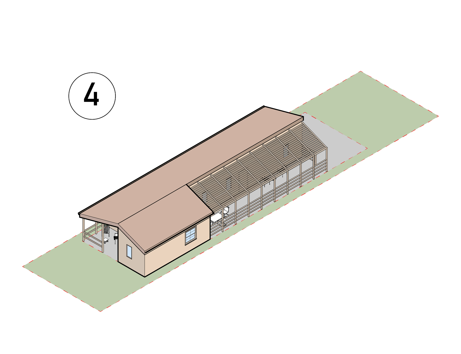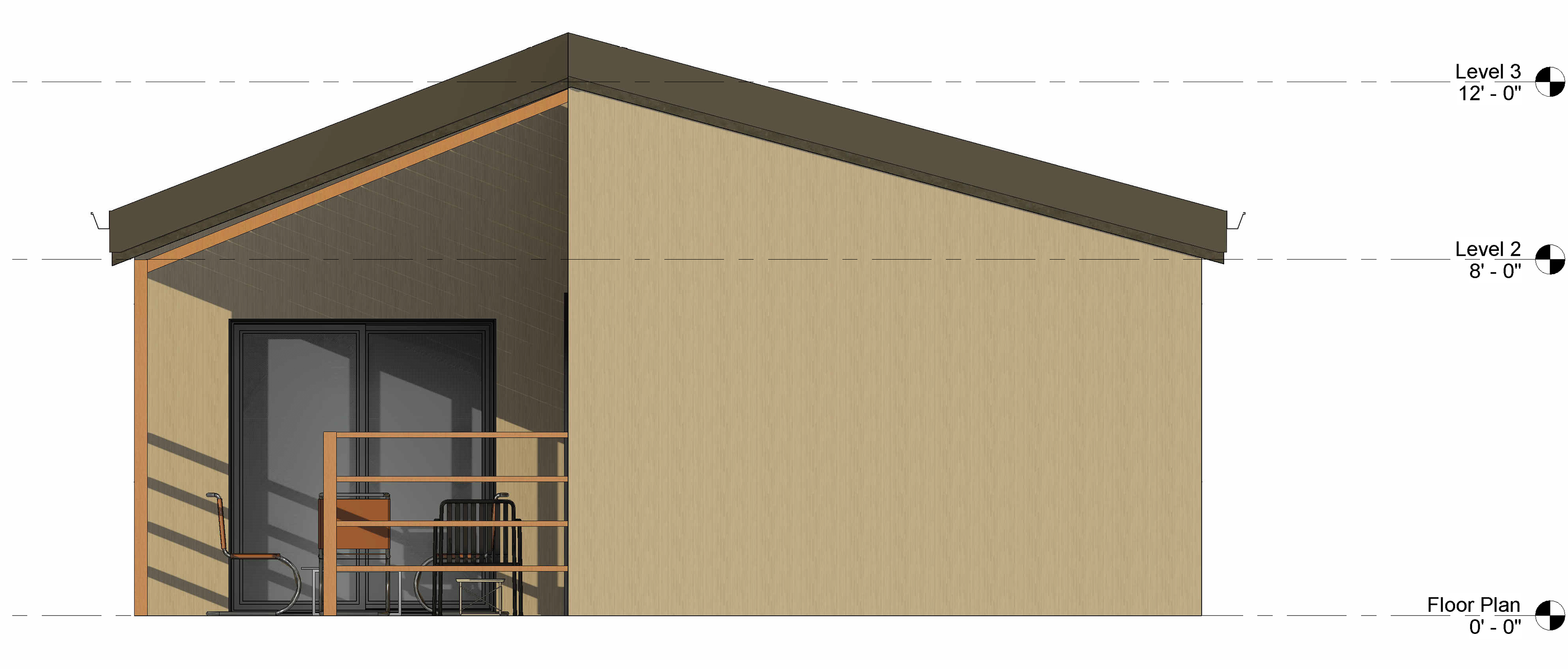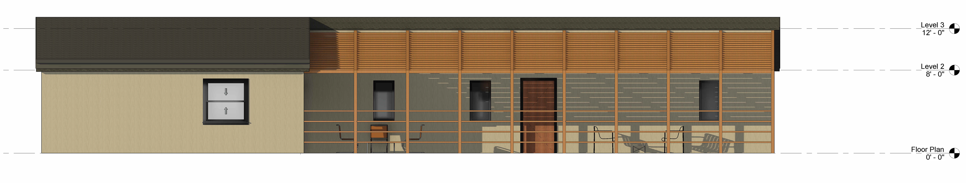 Introduction of Patio Spaces and Unifying Roof with Ridge Beam