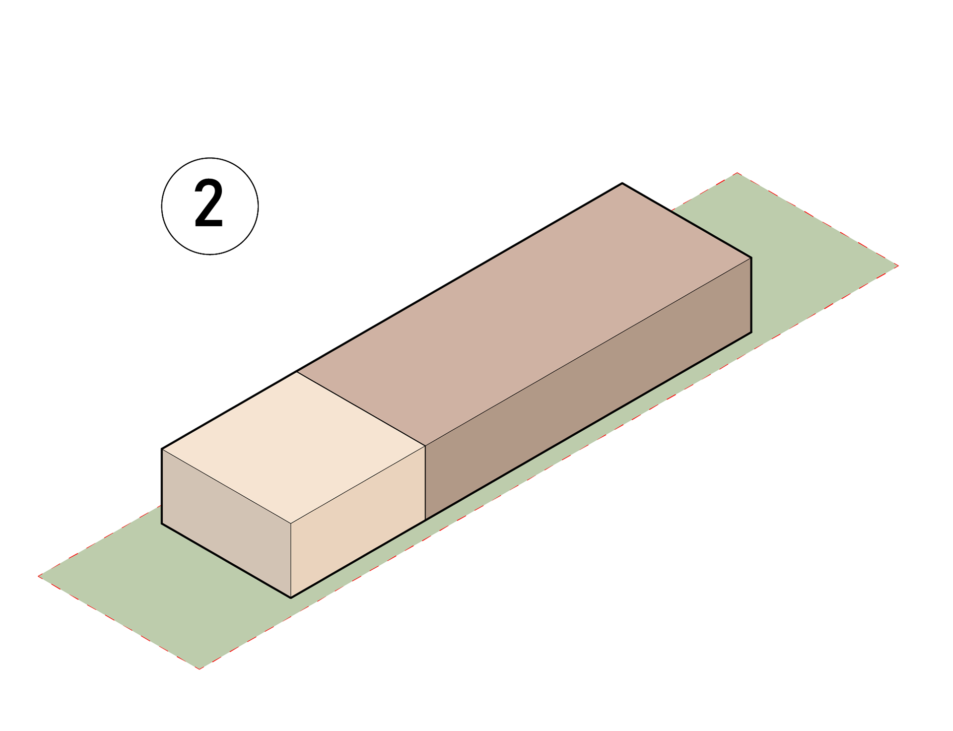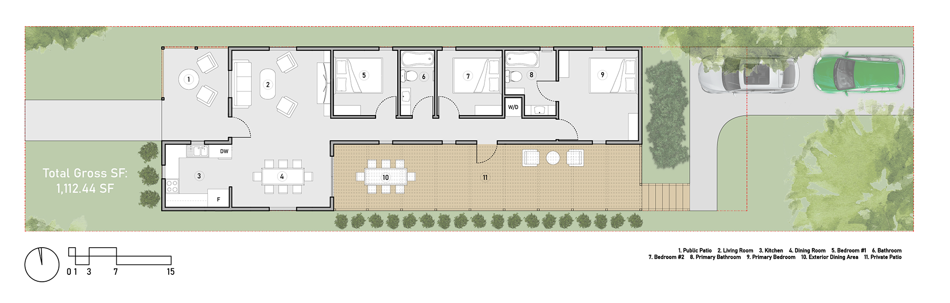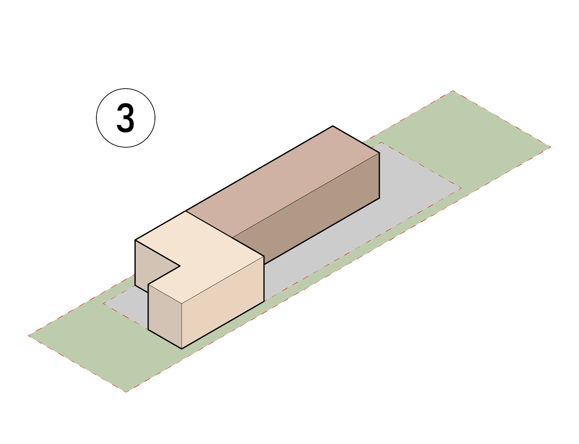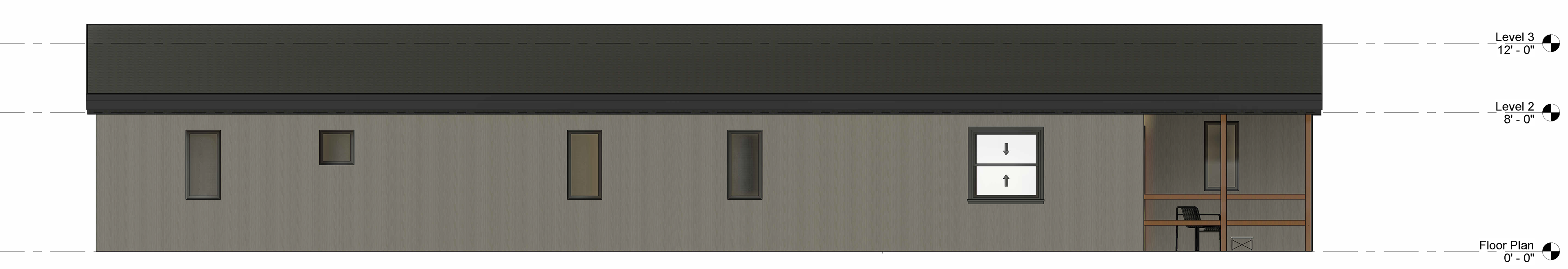 Introduction of Patio Spaces and Unifying Roof with Ridge Beam